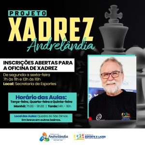 Estão abertas as inscrições para o Projeto Xadrez Andrelândia, uma iniciativa da Prefeitura de Andrelândia para incentivar o aprendizado e a prática do xadrez na comunidade. O projeto é voltado para crianças e jovens de até 17 anos.